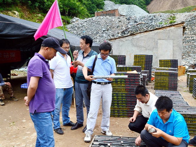 深孔項(xiàng)目的實(shí)施得到了各級(jí)領(lǐng)導(dǎo)的高度重視和支持。2014年11月18日,小秦嶺科研深孔第一鉆正式開(kāi)鉆,省地礦總公司總工程師齊文、省地調(diào)院地調(diào)中心和我隊(duì)有關(guān)領(lǐng)導(dǎo)親臨現(xiàn)場(chǎng)指導(dǎo)。施工期間,鉆探界的同仁多次來(lái)現(xiàn)場(chǎng),給予了技術(shù)上的支持和幫助。王根寶隊(duì)長(zhǎng)、王戰(zhàn)社書(shū)記經(jīng)常深入工地指導(dǎo)工作、協(xié)調(diào)關(guān)系,督促檢查安全,要求工程公司精心組織、科學(xué)施工,確保科研鉆探項(xiàng)目實(shí)現(xiàn)預(yù)期目標(biāo)。